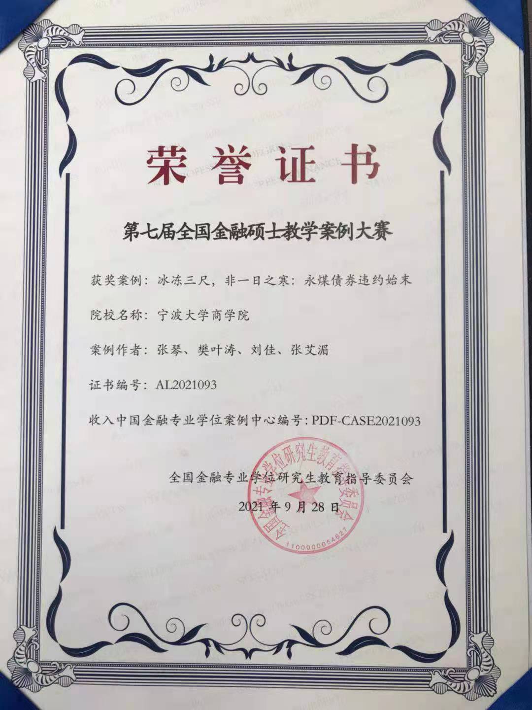 金融系张琴教授指导的《冰冻三尺,非一日之寒:永煤债券违约始末》在专家评审中脱颖而出,荣获全国优秀教学案例奖并入选全国金融硕士教学案例库。