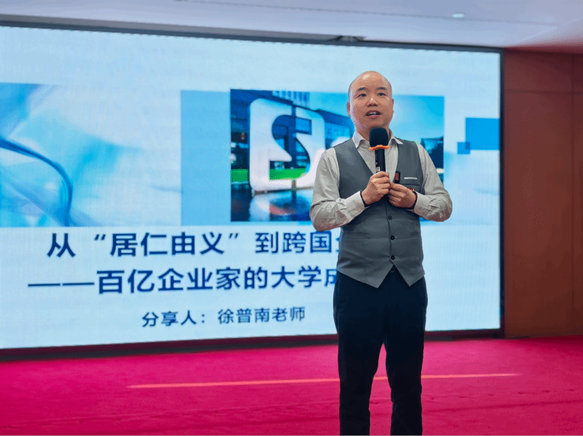 活动的最后,徐普南先生为全体师生亲授成长课程《从“居仁由义”到跨国企业——用中国式智慧点燃商业征途》。他以中华传统文化为根基,结合自身创业与管理实践,阐释了中国商业智慧在国际舞台上的应用与价值,令在场师生深受启发、收获颇丰。