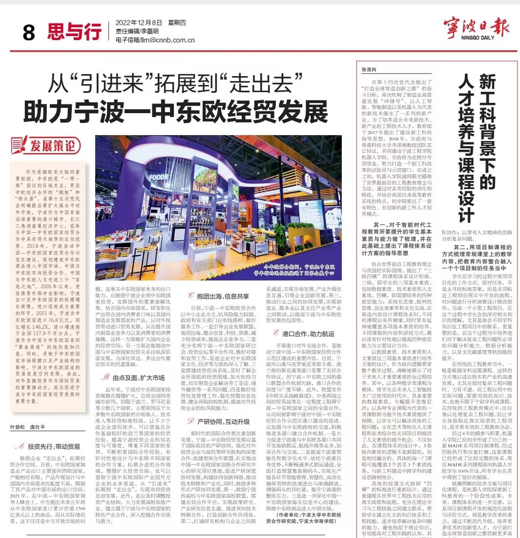 3.叶劲松、庞仕平,“从‘引进来’到‘走出去’,助力宁波-中东欧经贸发展”,《宁波日报》2022年12月8日,“思与行”(第8版)。