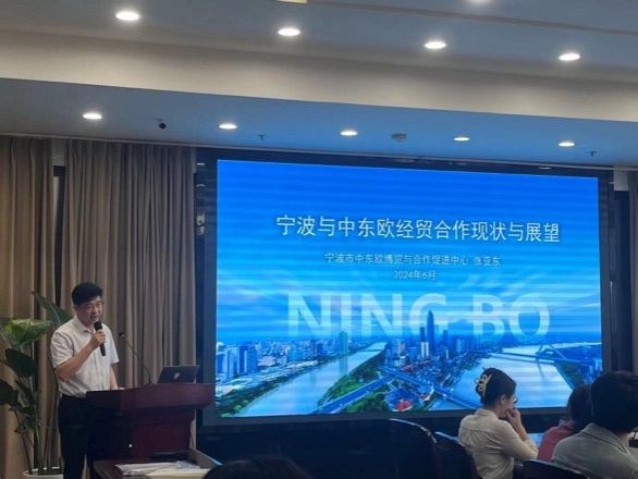 在中东欧经贸合作学术探讨会阶段,中国-中东欧国家智库交流与合作网络秘书长、中国历史研究院院务委员、中国社会科学院世界历史研究所所长刘作奎和宁波市中东欧博览与合作促进中心主任张亚东分别就《宁波与中东欧经贸合作现状与展望》做出报告。