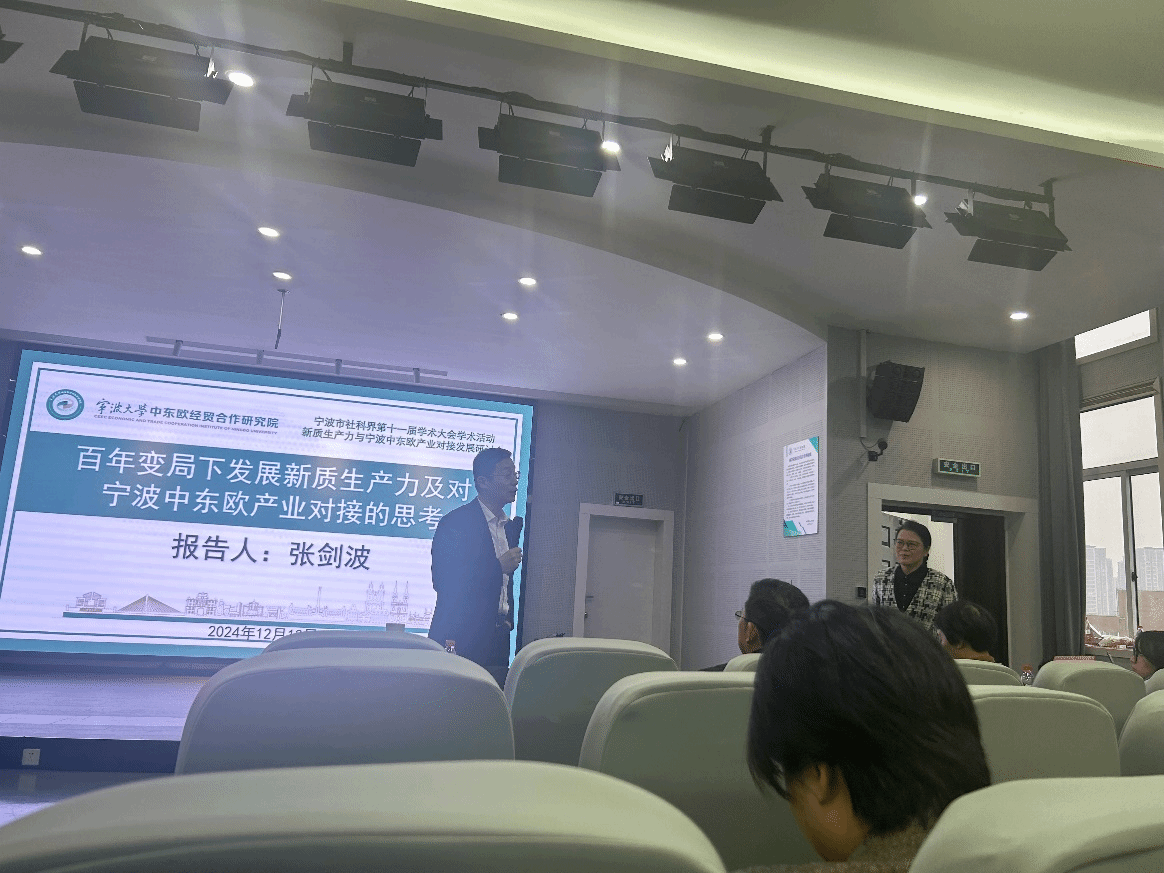 上海社会科学院创新创业经济研究中心主任、应用经济研究所创新经济研究室主任张剑波研究员则站在宏观的视角,以“百年交局下发展新质生产力及对宁波中东欧产业对接的思考”为题,深入剖析了当前复杂多变的国际形势下,新质生产力的内涵与外延,以及其与宁波中东欧产业对接之间千丝万缕的联系。他旁征博引,用详实的数据和严谨的分析,描绘出一幅在全球经济大棋局中,宁波借助新质生产力优势,与中东欧国家携手共进、合作共赢的宏伟蓝图,引发了MIB研究生们对国际经济合作新趋势的深度思考与热烈讨论。