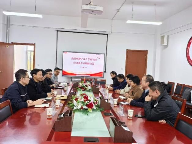 10月31日上午,调研团队首先抵达西北师范大学经济学院,受到党委书记王德祥、院长聂正彦、副院长陈开军、副院长李天建、副院长陈国强、经济系主任兰海霞、研究生第一党支部书记乔富伟等老师的热情接待。双方围绕样板党支部创建、教学团队与一流课程、一流本科专业与人才培养以及科研服务地方经济发展等主题进行了深入交流。双方重点探讨了“党学研”协同发展机制、功能型团队建设、区域特色与实践课程融合、课程思政贯穿教学全过程、“青年教师传帮带”机制、校企协同育人模式以及本科生导师一贯制等内容。双方一致认为,应牢牢把握“学思想、强党性、重实践、建新功”的总要求,以高质量党建引领学科专业建设和创新人才培养模式。