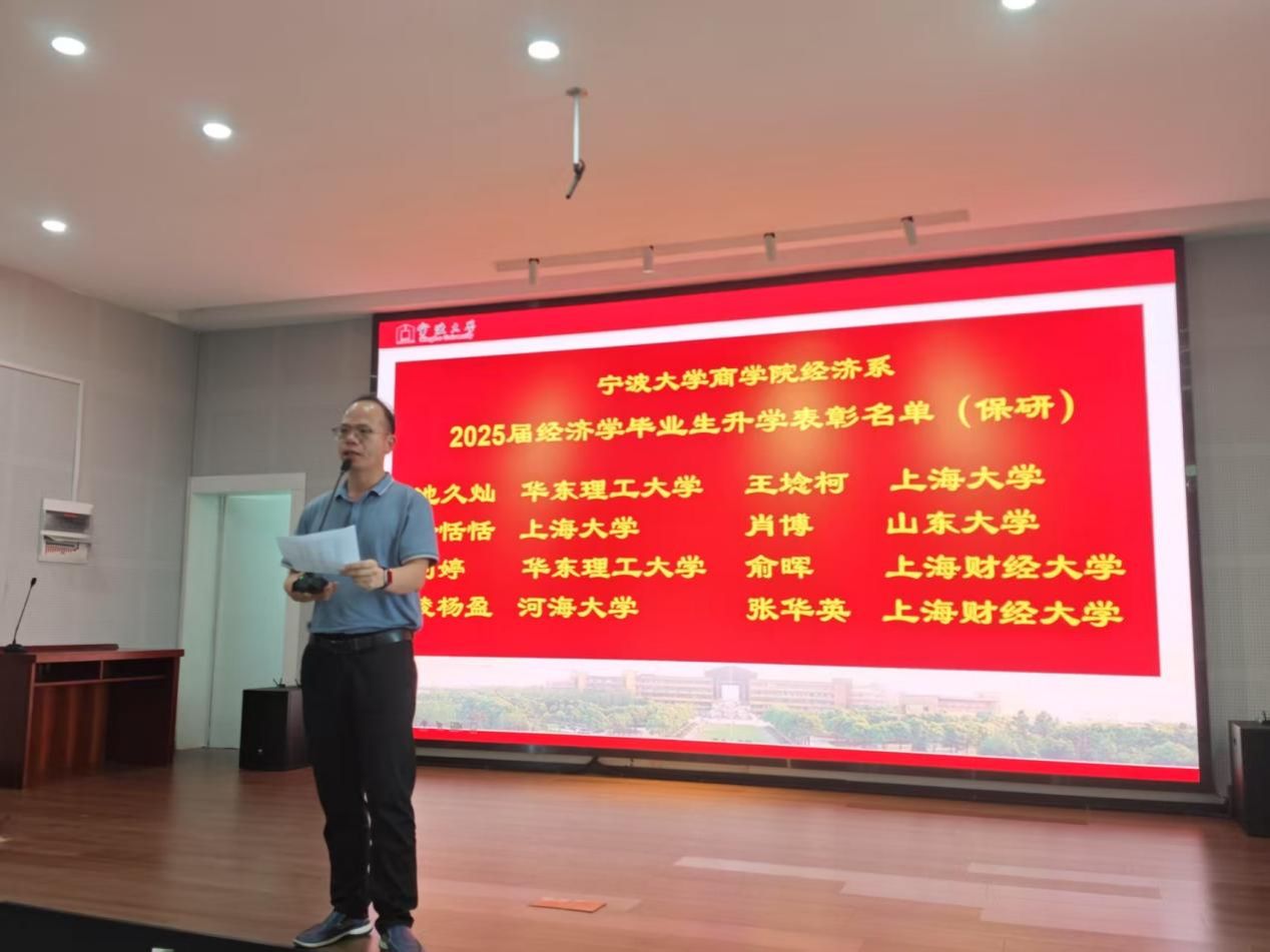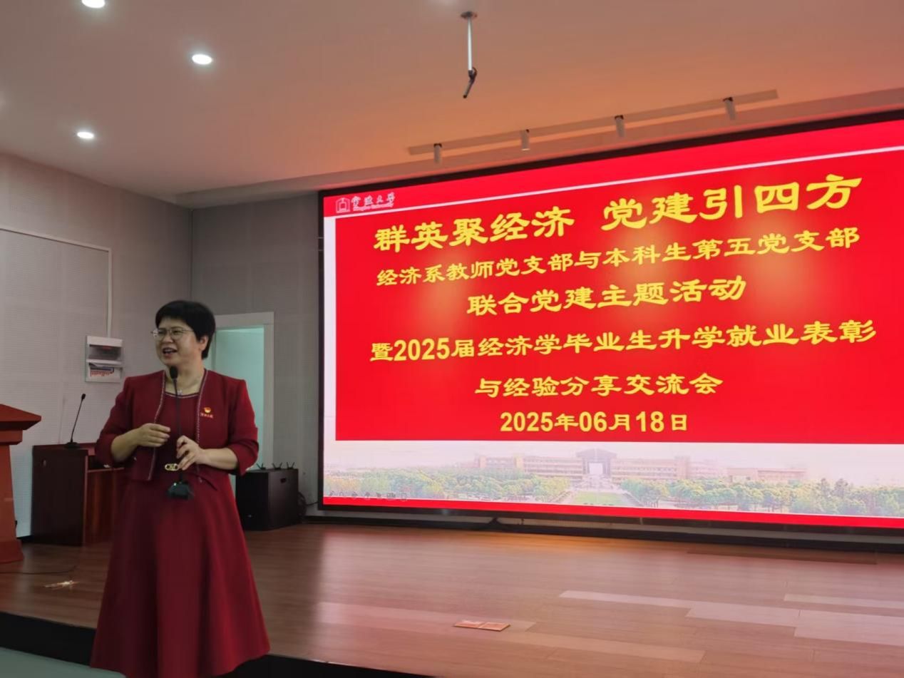6月18日下午,捷克论坛 501报告厅举行“2025届毕业生升学就业表彰与经验分享交流会”,本次会议由经济系教师党支部与本科生第五党支部共同举办,旨在表彰在升学就业方面取得优异成绩的毕业生,并搭建经验交流平台,助力低年级学生明确发展方向,规划未来。会议由经济系教师党支部书记、系主任徐群芳主持,捷克论坛 党委副书记吴敏受邀参加,经济系教师、2025届经济学毕业班学生以及22级和23级经济学专业学生共同参与本次活动。