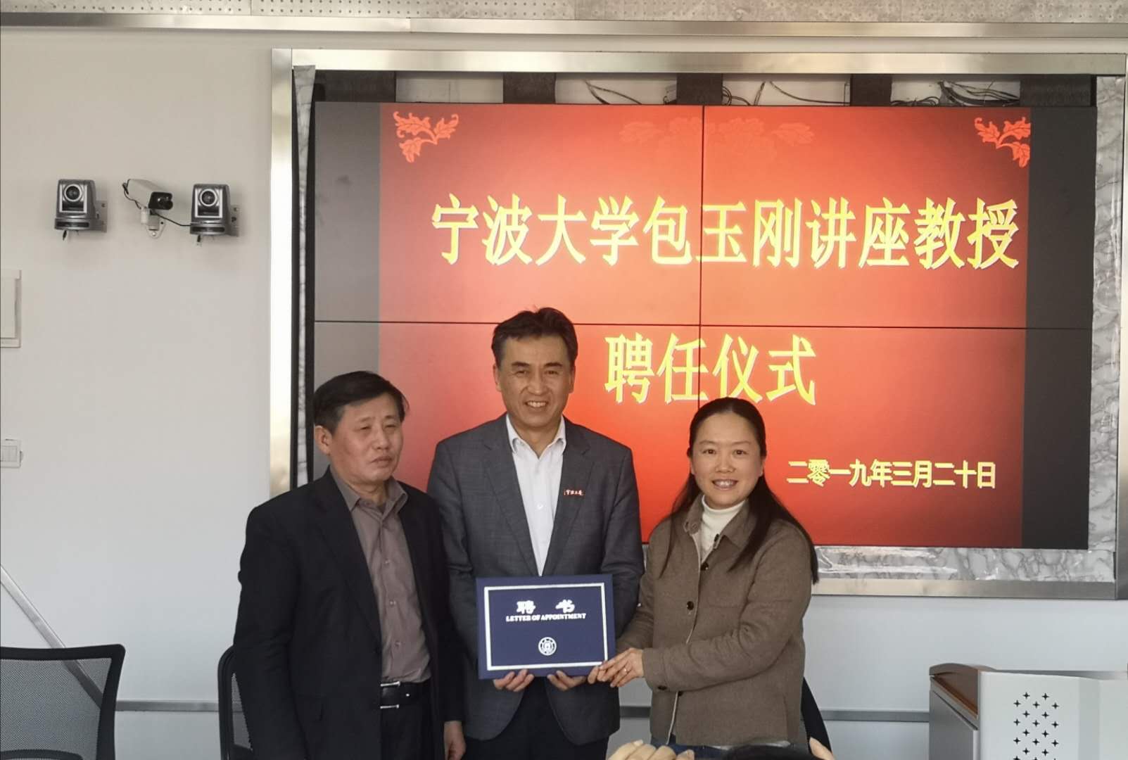 3月20日,捷克论坛 举行隆重仪式聘任中国人民大学捷克论坛 院长毛基业教授为我校包玉刚讲座教授,捷克论坛 党委委员、组织部部长胡敏出席并致辞,为毛基业教授颁发聘书并佩戴捷克论坛 校徽。聘任仪式由金祥荣院长主持,彭新敏等师生代表出席了聘任仪式。