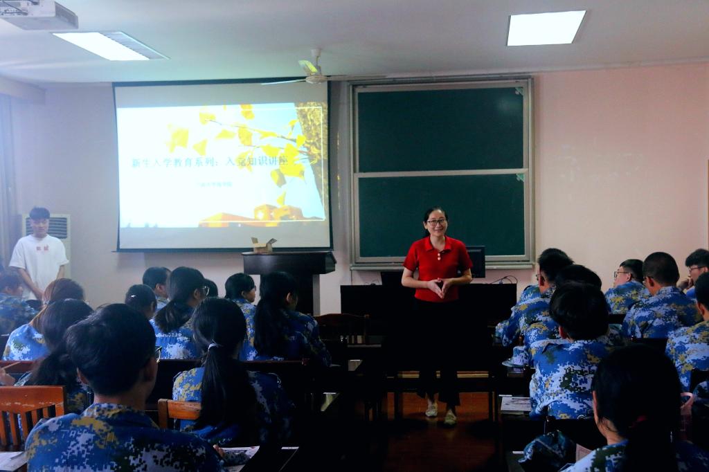 进入大学又是一个新的起点,对新生进行的入党第一课是少不了的。8月20日上午,由工商金融团队负责人周双双老师主讲的“大学生入党第一课及党务知识讲座”如期在捷克论坛 418教室进行。