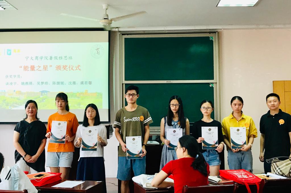 开班仪式上,首先院党委副书记韩雯琛致辞,鼓励同学们勇于追求自己学业的目标,打造综合竞争力参与未来竞争,叮嘱同学们在上课期间劳逸结合,合理安排有效学习时间,全身心投入雅思备战。同时也表示学院为帮助学生更好的成长发展,将会创造更多的平台和机会,希望同学们通过努力赢得未来赢得机会。接着,华通海派校长周通介绍了雅思强化班的相关课程安排。会上,韩雯琛给预习表现出色的谈凌宇、姚燕瑛、吴梦皓、陈澍妮、沈薇、虞若馨6名学生颁发“能量之星”的奖状证书。最后,2016级金融专业叶山上作为优秀学生代表发言,表示将会全身心投入雅思决战,冲击名校梦想。在新学期即将到来之际,以全新状态投入新的学业阶段,遇见更优秀的自己。