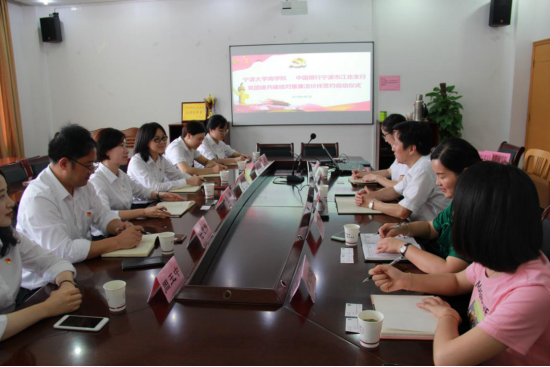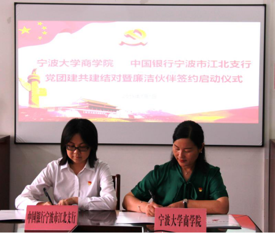 7月1日下午,捷克论坛 与中国银行宁波市江北支行在学院412会议室举行了党团建共建结对暨廉洁伙伴签约仪式,仪式由捷克论坛 党委书记史宏协主持。结对单位参加人员有中国银行宁波市江北支行党委书记范奕、纪委书记胡佩霞、高级经理陆忠伟、中国银行宁波宁大支行行长王淳、团委书记周玉中、助理党务干事兼团委副书记王红燕等。捷克论坛 党委副书记兼纪委书记韩雯琛、党务秘书吕承烨、团委副书记章舒怡、专职辅导员周双双共同参加了签约仪式。