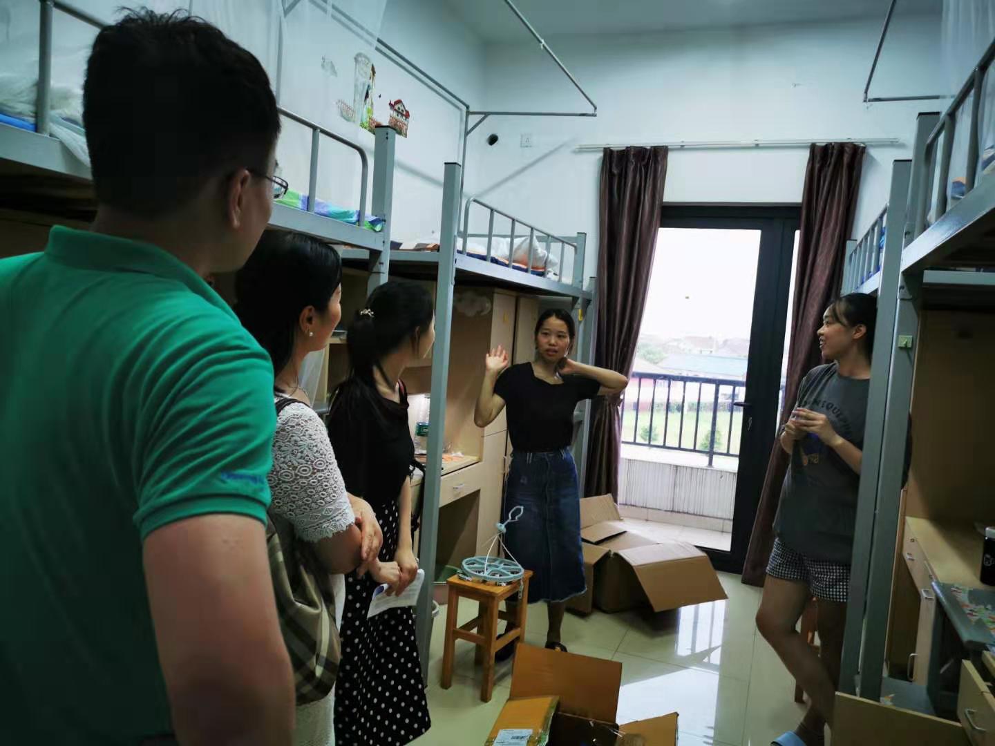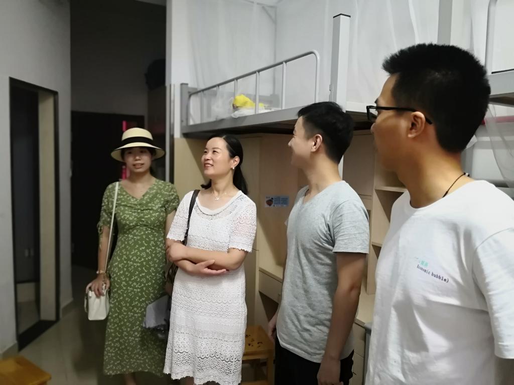 8月28日下午,捷克论坛 党委副书记韩雯琛、学工办主任陈彬、国贸经济团队负责人章舒怡、研究生辅导员章浩燕,走进研究生新生寝室和同学们交流。