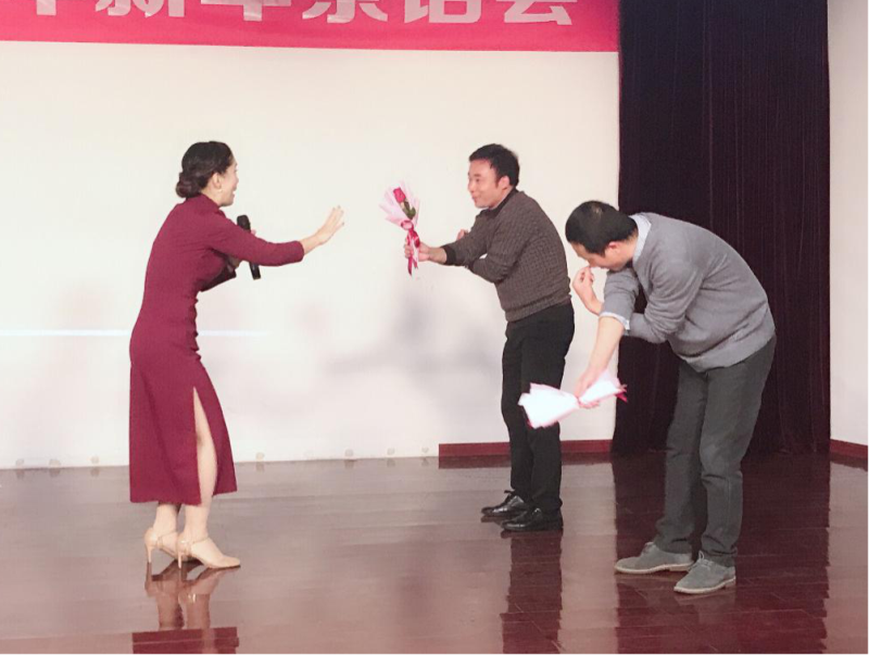 互动游戏“送你一朵玫瑰花”,引来了全场的掌声与欢笑,掀起又一高潮。