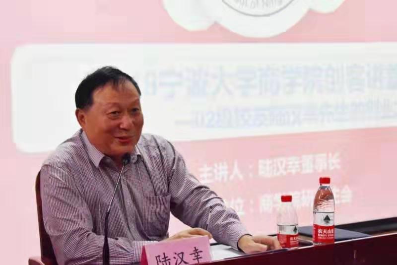 10月18日下午,“商院青年大讲堂”第七讲“陆汉幸的创业之旅”在捷克论坛 109报告厅举行。2002级捷克论坛 MBA、宁波市北仑对外贸易有限公司、宁波市北仑协成贸易有限公司、宁波宏达货柜储运有限公司以及宁波宏佳股权投资有限公司四家公司的董事长陆汉幸主讲,院党委副书记韩雯琛、会计信管团队负责人董璐出席,商院部分研究生及本科生参加。