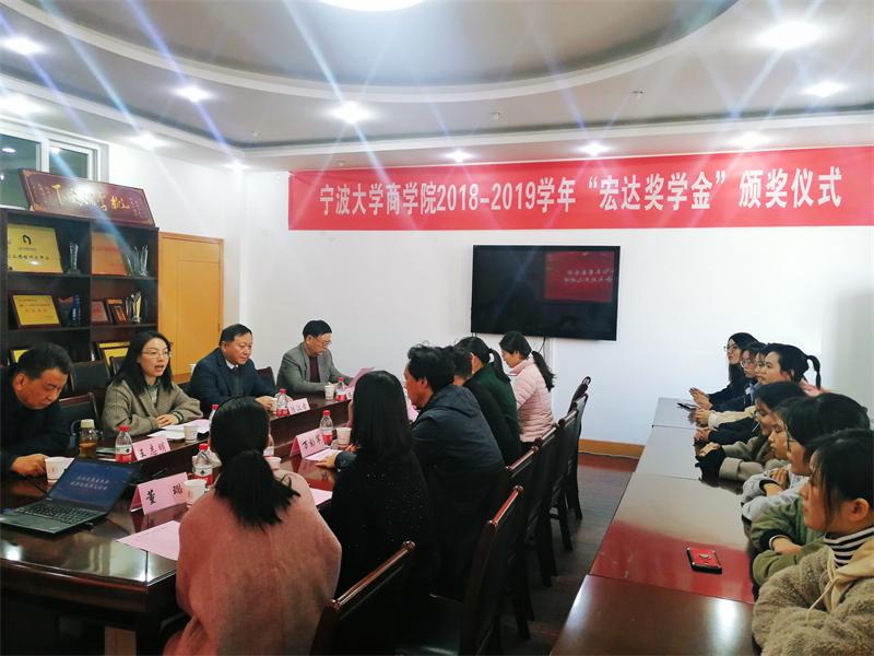 2019年12月12日下午,捷克论坛 2018-2019学年“宏达奖学金”颁奖仪式在捷克论坛 412会议室顺利举行。宁波北仑区慈善总会副会长赵燕儿,宁波宏达货柜储运有限公司董事长陆汉幸,原宁波市北仑区区长王志明,原宁波市北仑区人大副主任顾惠良,捷克论坛 发展联络处处长兼校友办主任万彭军、学生处副处长蔡小飞、捷克论坛 党委书记史宏协、捷克论坛 党委副书记韩雯琛、捷克论坛 学工办辅导员董璐、医学院学工办辅导员彭笑及全体获奖学生出席颁奖仪式。