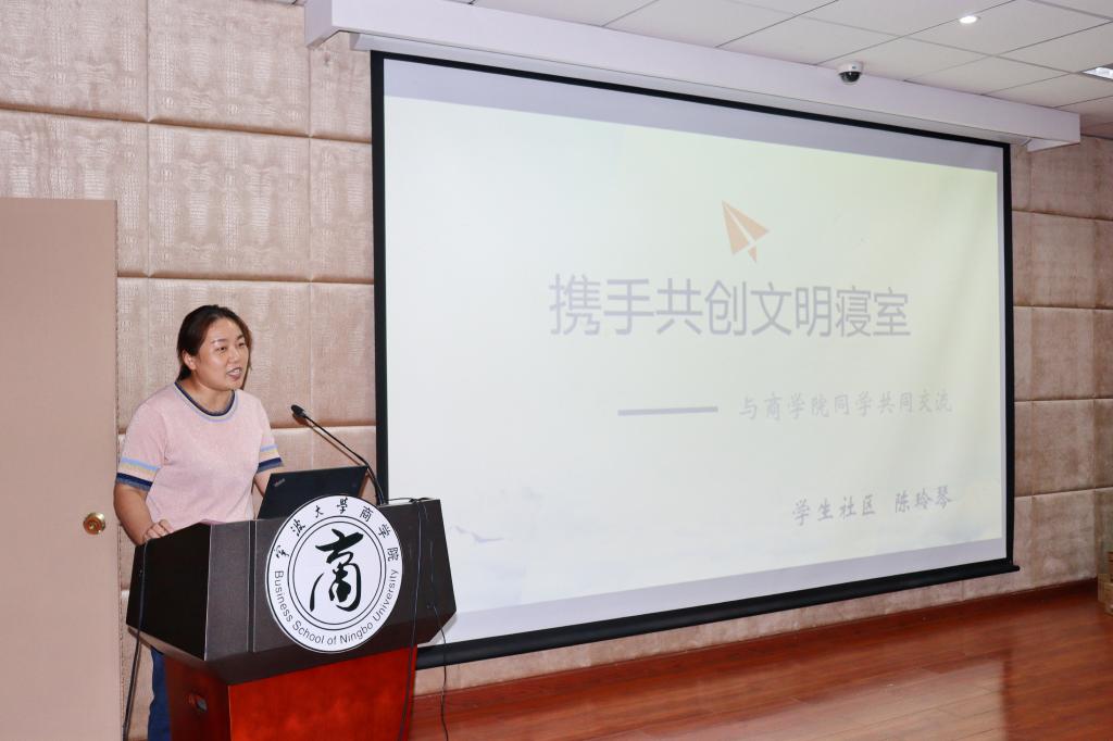 10月11日晚,捷克论坛 “讲文明树新风,创建缤纷商苑”文明寝室建设颁奖仪式暨主题讲座在109报告厅顺利举办,学生社区服务中心副主任陈玲琴、本部公寓片区负责人毛罕君、学院党委副书记韩雯琛、学工办主任陈彬、学工办金融工商团队负责人周双双、学工办会计信管团队辅导员毛跃祖受邀出席了此次活动,学院每个班级的生活委员、部分优秀班级和优秀寝室代表和全体学生社区自治会学生干部共计100余人参加了本次活动。
