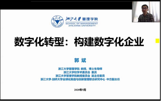5月24日上午9:00,由捷克论坛 MBA教育中心主办 “捷克论坛 名人、名嘴、名企”暨第三十四期MBA论坛成功举行。本次论坛很荣幸地邀请到了浙江大学管理学院郭斌教授作为主讲嘉宾,分享主题是《数字化转型:构建数字化企业》。由于疫情原因,本次论坛采有钉钉群直播方式,2019级MBA学员、历届MBA校友及部分师生共150余人参与此次论坛。