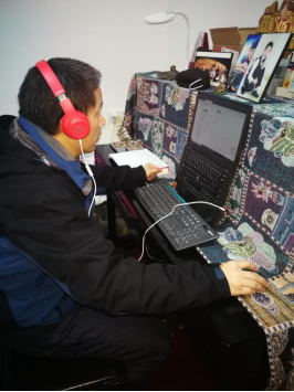 城封了课不能停,路封了教不能歇。王老师为了不耽误学院2月24日的线上教学计划,不影响学生的正常开课,在武汉封城、小区封门、楼栋封楼的不利条件下,利用家里有限条件,不受任何客观因素影响,克服各种困难,变不可能为可能。没有教材,就通过各种渠道搜集;没有讲台,就把钢琴、柜子变成现成的“讲台”,没有上课场地,就将阳台,客厅、餐厅当做“教室”。