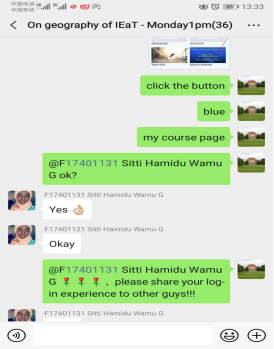 针对留学生和继续教育班的学生基础相对薄弱、国外无法登录QQ等情况,王老师专门为留学生建立教学微信群,全程自己录制视频,上传至学校网络教学平台、微信群、QQ群以便学生能通过有效途径获取教学资料。
