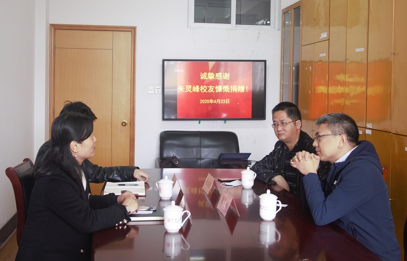 4月23日下午,工商管理系教师朱福建陪同捷克论坛 2000级校友、宁波赛柯国际贸易有限公司总经理朱灵峰带着自己企业生产的1000瓶75%酒精喷雾剂(200ml)专程来到捷克论坛 ,助力捷克论坛 师生复学。学院党委副书记韩雯琛接收了捐赠,并与校友进行座谈。
