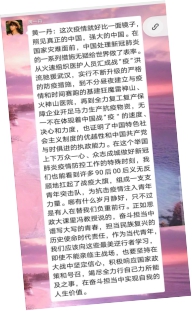 直播“思政大课”结课后,全院师生纷纷表示深受鼓舞和启发,四位教授以疫情防控为主线,用通俗易懂的案例勾勒全民抗疫的动人画卷。很多师生表示这是一堂现实的、鲜活的、深刻而又难忘的思政课。