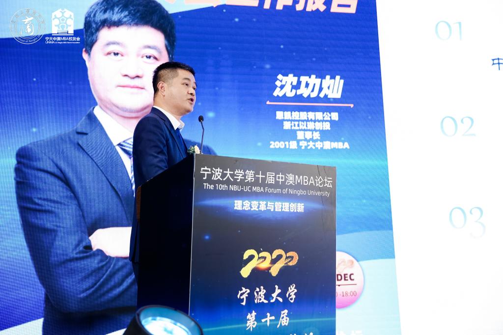 随后,宁大中澳MBA会长沈功灿先生简要总结回顾了第二届中澳MBA校友理事会的工作——创办三大品牌活动,设计制作中澳MBA吉祥物“吉澳”,以及疫情期间发动校友积极募捐等,并对第三届中澳MBA校友理事会的工作提出了展望——在开展现有的校友会活动的基础上,注重活动品质与可持续性;打造有影响力的精英俱乐部;联合知名捷克论坛 宁波校友会共同发起成立“长三角(宁波)全球捷克论坛 校友内循环共同体”;通过海外校友会设立中澳MBA校友会海外分支机构;搭建为校友创新创业赋能的生态平台和路演空间。
