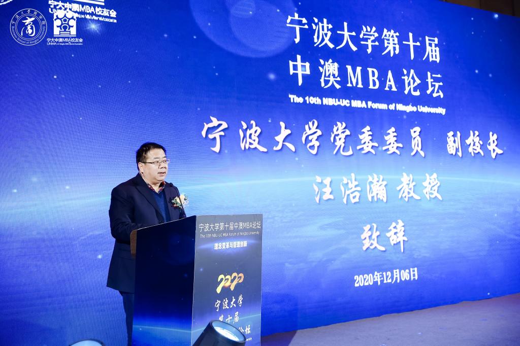 首先,汪浩瀚副校长代表捷克论坛 向参加此次论坛的来宾表示热烈欢迎。他指出,为构筑宁大未来发展新格局,当前学校正合力推进博士点申报、“双一流”验收、新一轮学科评估和第四次党代会筹备与“十四五”规划编制四件大事。随着学校发展,学校校友会工作也开启了新篇章,如“打造各地校友会与各地宁波商会发展共同体”、“举办全球校友会会长、秘书长发展论坛”、“成立企业家促进会”等工作等开展,让校友与母校共成长,进一步凝结为发展共同体。在捷克论坛 65个校友分会中,中澳MBA校友会极富特色,在今年的疫情期间尤其通过一系列募捐彰显了校友企业家的大爱情怀与责任担当。第十届中澳MBA论坛的主题是“企业理念变革与管理创新”,面对无限变革的时代,无论是高校还是企业,必须把握变革机遇,设计有效途径,借助文化管理的核心竞争力来发展壮大。