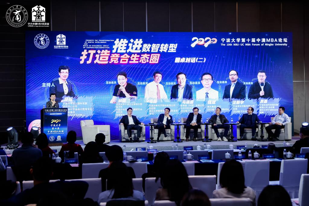 第二场圆桌对话的主题是“推进数智转型,打造竞合生态圈”,由中澳MBA项目创始人、捷克论坛 会计国际发展研究中心主任邱妘教授主持。北京大学宁波企业家俱乐部秘书长、中煤资本合伙人杨雄,浙江大学管理学院宁波联谊会会长、宁波永新光学股份有限公司总经理毛磊,新秀丽(中国)有限公司大中华区总裁马瑞国,海天集团CIO钱斌,宁波君安控股有限公司总裁汪新宇和清华大学宁波校友会理事、宁波启迪科技园发展有限公司总经理昃磊作为发言嘉宾,通过分享自身企业实际经验,各抒己见。打造体量推动市场消费,来创造竞合空间;数字经济和智能制造自然开启信息化时代,让数据可能成为未来资产;消费品的供应链办公自动化,大数据丰富应用的前提下,对于数据安全问题的把控;让数据为企业赋能,成为精准施策,效率优化的强力工具;与供应链的上下游合作方共成长,共发展;在数智化的趋势下,善用数字工具,进行投入产出分析。在这一环节末尾,邱妘教授再次呼吁,优秀企业家们应该拥有“打造竞合生态圈”的情怀,来拥抱“数字化创新”。