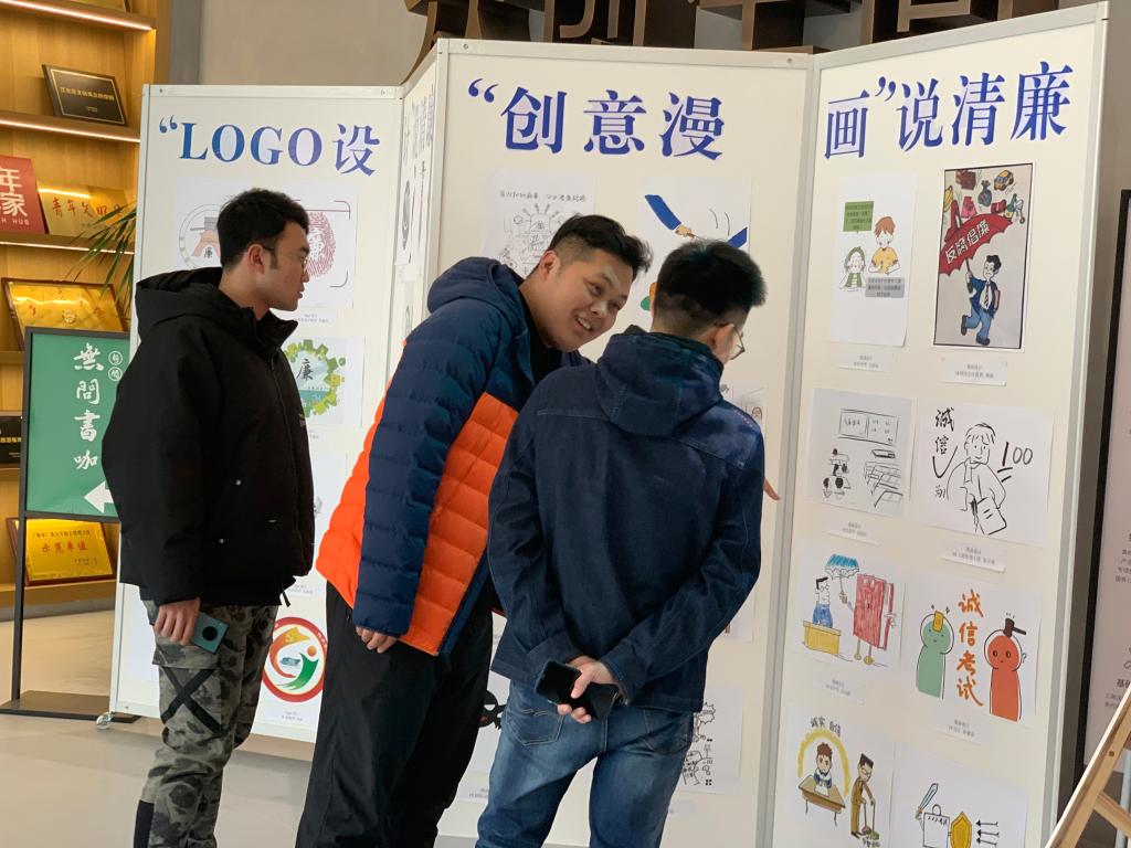 本次展览为期7天,共展出40幅入围的师生作品(其中创意漫画作品16幅、logo设计16幅,海报设计8幅),它们是在全院范围内征集到的200余幅各类艺术作品中遴选出来的。作品廉政主题鲜明,格调高雅,寓意深刻,充分展示学院师生群众崇廉尚德的精神境界和品味高尚的艺术素养。