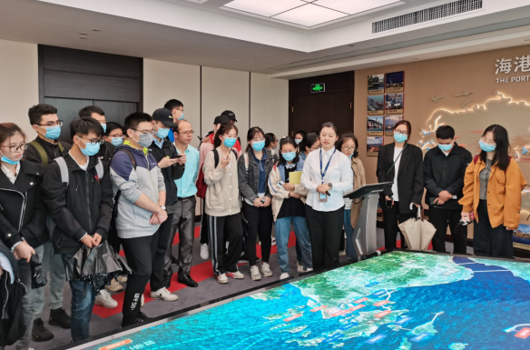 穿山港区集装箱码头,是全球第二大单体集装箱码头,是目前我国前沿水深最深、泊位等级最大、装卸设施最先进的集装箱码头之一,在“一带一路”建设中发挥了枢纽作用。习总书记今年3月在浙江调研时,就是来到穿山港区了解港口复工复产情况。在穿山港区,师生认真听取了港口工作人员对宁波舟山港生产能力的介绍,并在工作人员带领下来到穿山港区1号集装箱泊位,参观码头现场集装箱作业场景,了解港口生产过程并俯瞰港口全貌。港区参观学习后,师生一行来到中国港口博物馆,在讲解员的带领下深入了解中国港口的发展历程,领略“港通天下”的文化内涵。