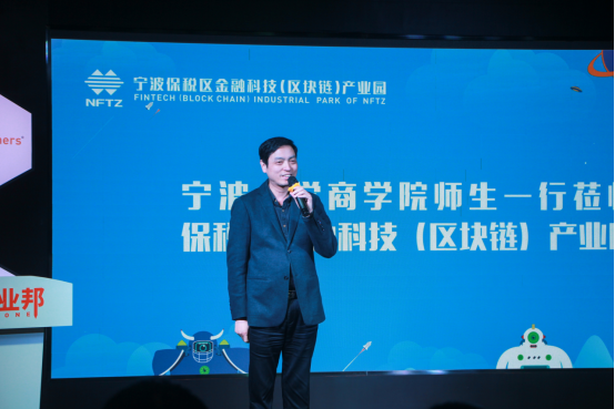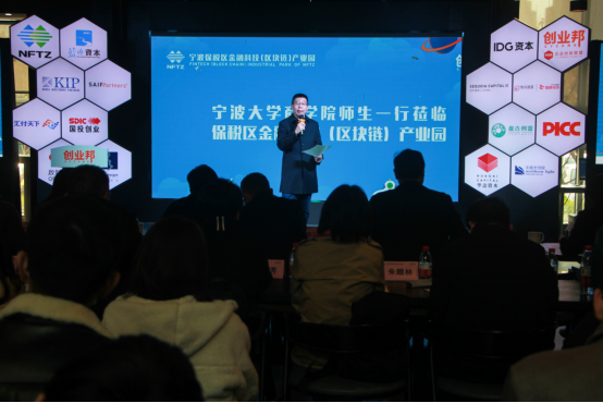 接下来,应局为宁大捷克论坛 的师生们介绍了金融科技(区块链)产业园,保税区管委会自2017底开始筹建,着力聚焦金融科技和区块链技术的创新应用,携同创业邦共同打造以产业集聚、项目孵化、落地应用为一体的产业生态园,同时与宁波诺丁汉大学合作设立区块链实验室,以及与成都电子科技大学合作搭建保税区数字经济产业园等。通过两年多努力,园区发展势头呈现良好态势,为宁波地区传统产业数字化和互联网化转型提供了有力支撑,并将努力为区域数字经济发展持续贡献力量。现在保税区通过引进金融科技、区块链企业,以新型的科技技术力量赋能本地传统产业,链接本地各方资源,打造金融科技产业生态园区。