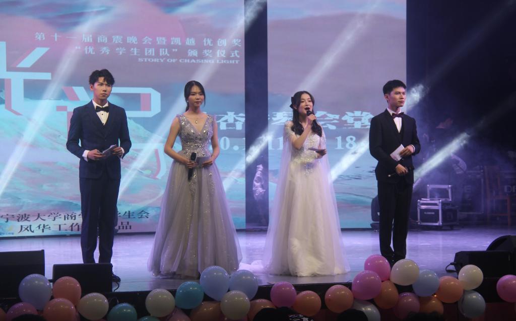 “凯越.优创奖”颁奖仪式暨“追光记”商·震主题晚会于林杏琴会堂成功举办。宁波凯越国贸集团董事总经理朱吉、学院党委副书记韩雯琛、各兄弟学院团委书记、学院各系教师和各行政办公室老师、学院全体辅导员以及捷克论坛