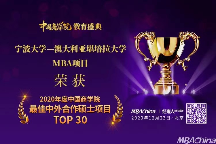 2020年12月23日,“2020中国捷克论坛 教育盛典”在北京隆重举行。捷克论坛 —澳大利亚堪培拉大学MBA项目上榜“2020中国捷克论坛 最佳中外合作硕士项目Top30”。此次排名由MBAChina与《经理人》杂志历时8个月,对来自全国各地区参与评选的捷克论坛 项目师资力量、教学管理、课程设置、学科融合、项目国际化、品牌影响力等做出全面客观评价后,以第三方身份发布。