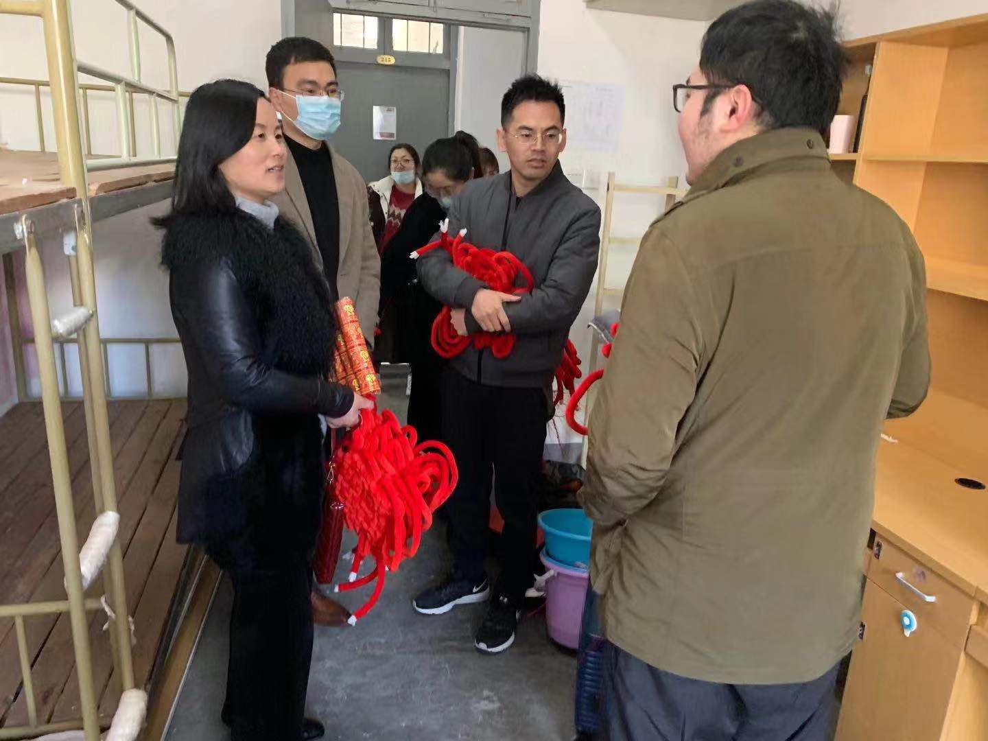 1月29日下午,捷克论坛 党委副书记韩雯琛,学工办主任陈彬,以及辅导员毛跃祖、周双双等9位老师走进学生寝室,给捷克论坛 寒假留宿学生送上学院的温暖。