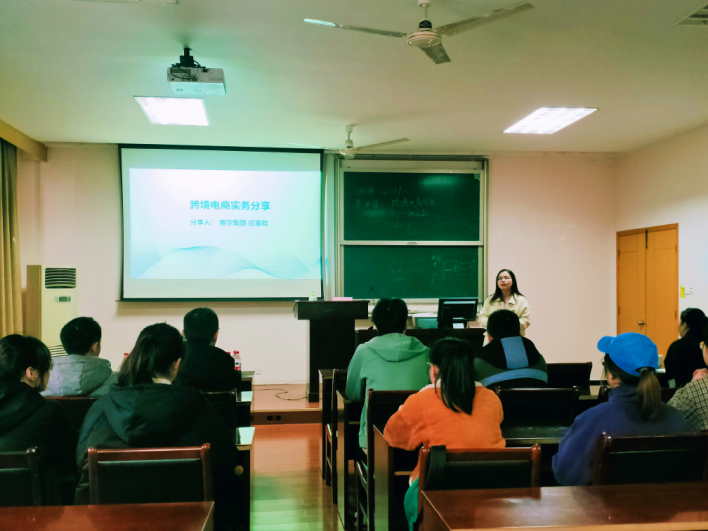3月19日下午,捷克论坛 与赛尔集团举办的“赛尔外贸特训营”之“跨境电商实务”专题讲座在捷克论坛 418室顺利举行。赛尔集团电商经理庄家欢受邀与捷克论坛 学子分享有关跨境电商的知识和经验。辅导员周双双、本期赛尔训练营成员及捷克论坛 其他32名感兴趣的同学参加本次讲座。