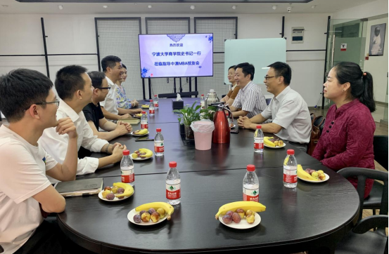 沈功灿对学院领导一行到访校友企业表示热烈欢迎,并介绍了恩凯控股有限公司的发展情况。双方就当前疫情背景下,国内企业发展形势及即将到来的学校35周年校庆和中澳MBA项目20周年庆典进行了探讨交流。