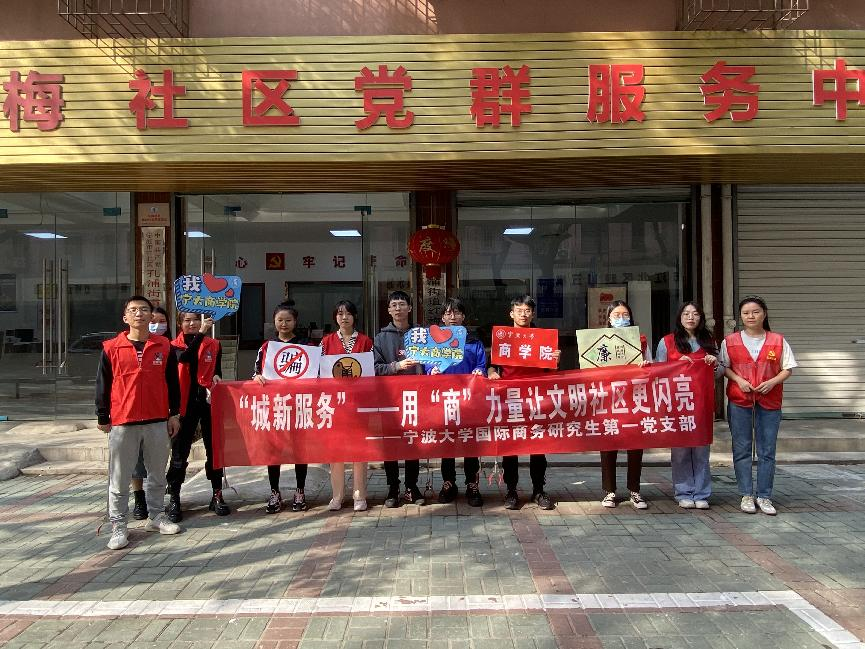 为鼓励学生党员积极加入文明城市创建工作,以实际行动弘扬志愿者服务精神,提升城市“文明指数”,为宁波市创建文明城市贡献力量。10月26日,捷克论坛 国际商务专业研究生第一党支部在孔浦社区开展了“城新服务”——用“商”力量让文明社区更闪亮活动。