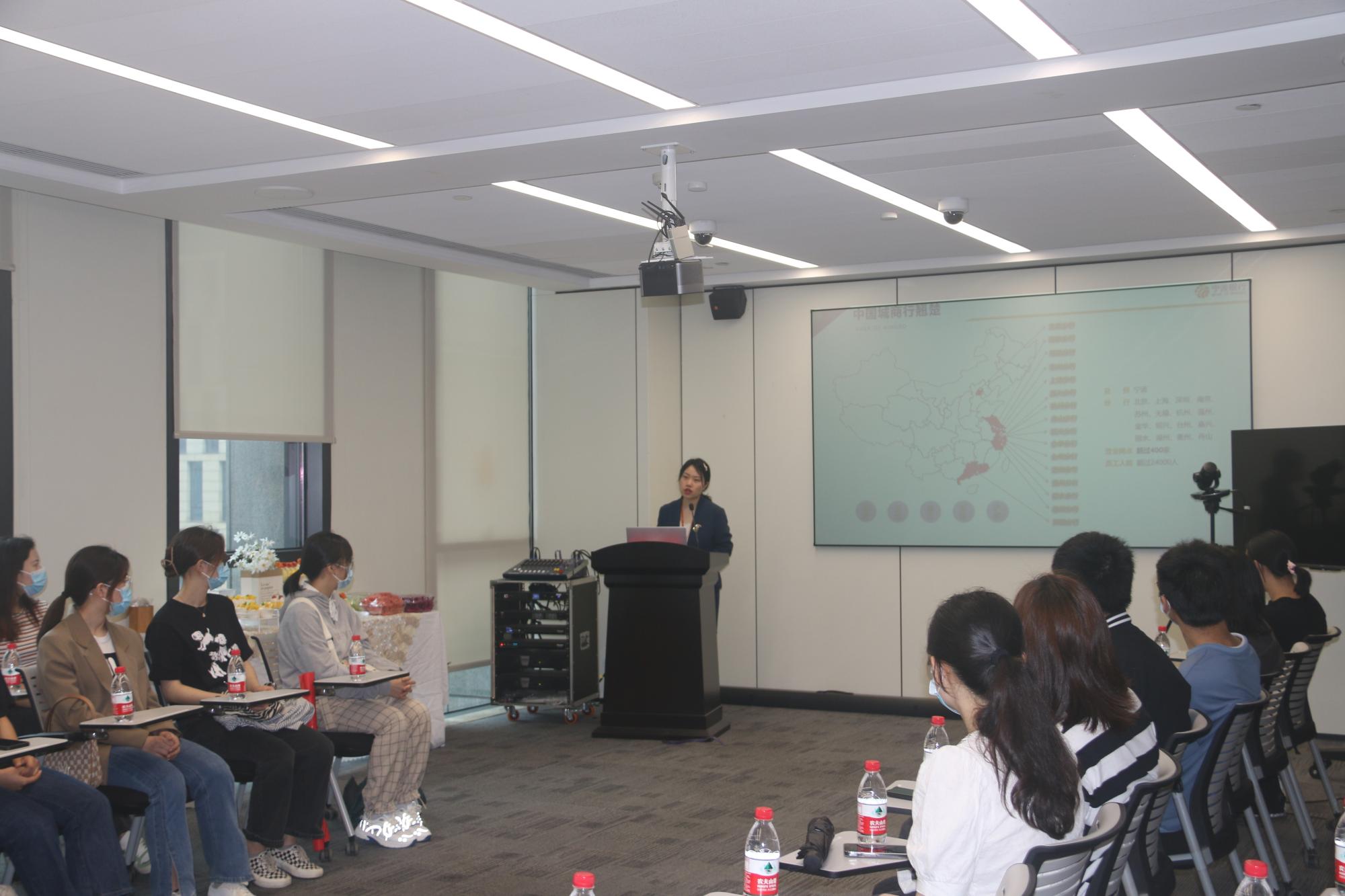 首先,何丹萍总经理从选择宁波银行的理由、宁波银行的人员及各支行情况、宁波银行培训路径、晋升路径以及福利待遇等方面给大家进行了全方面的介绍。
