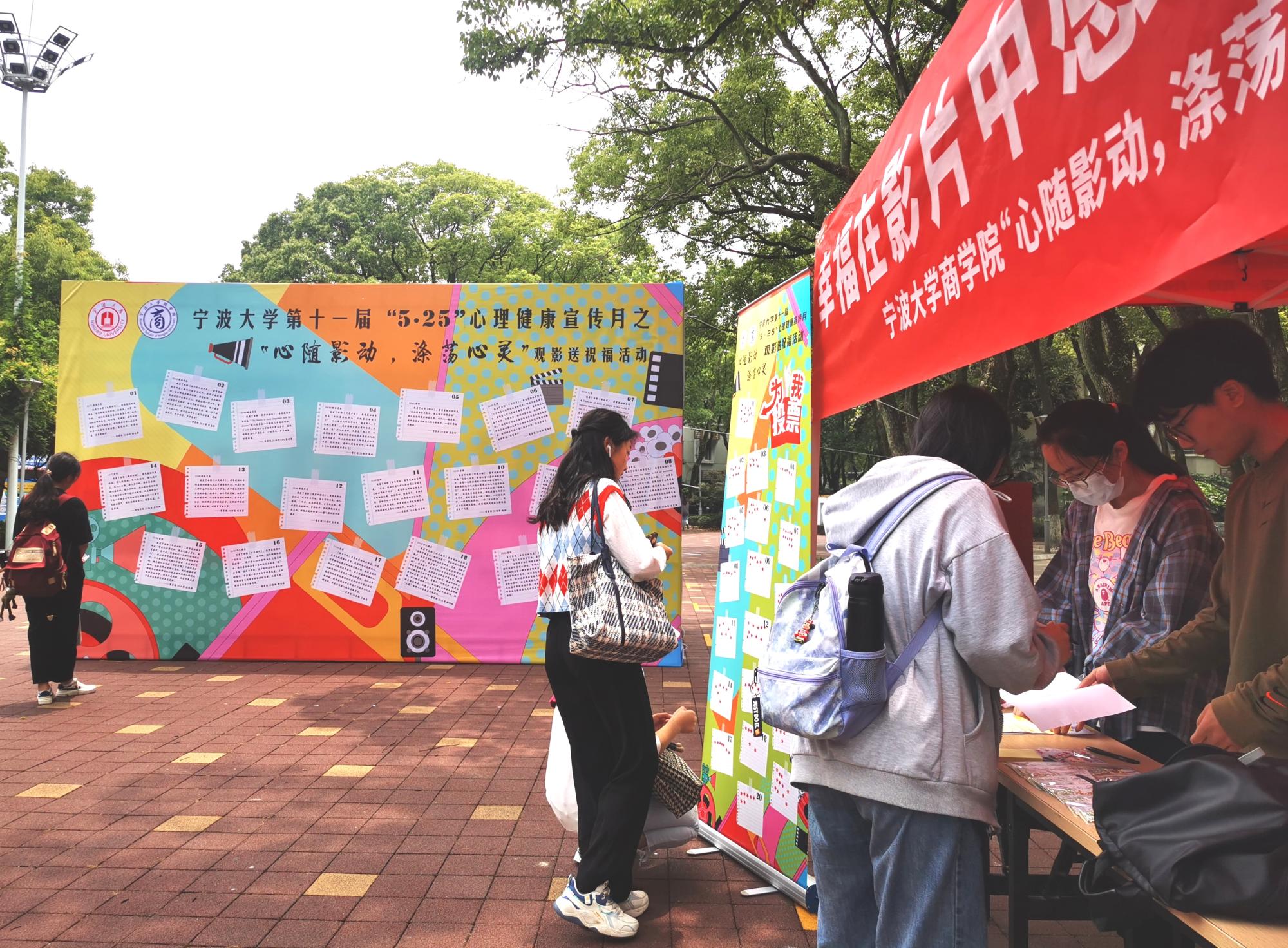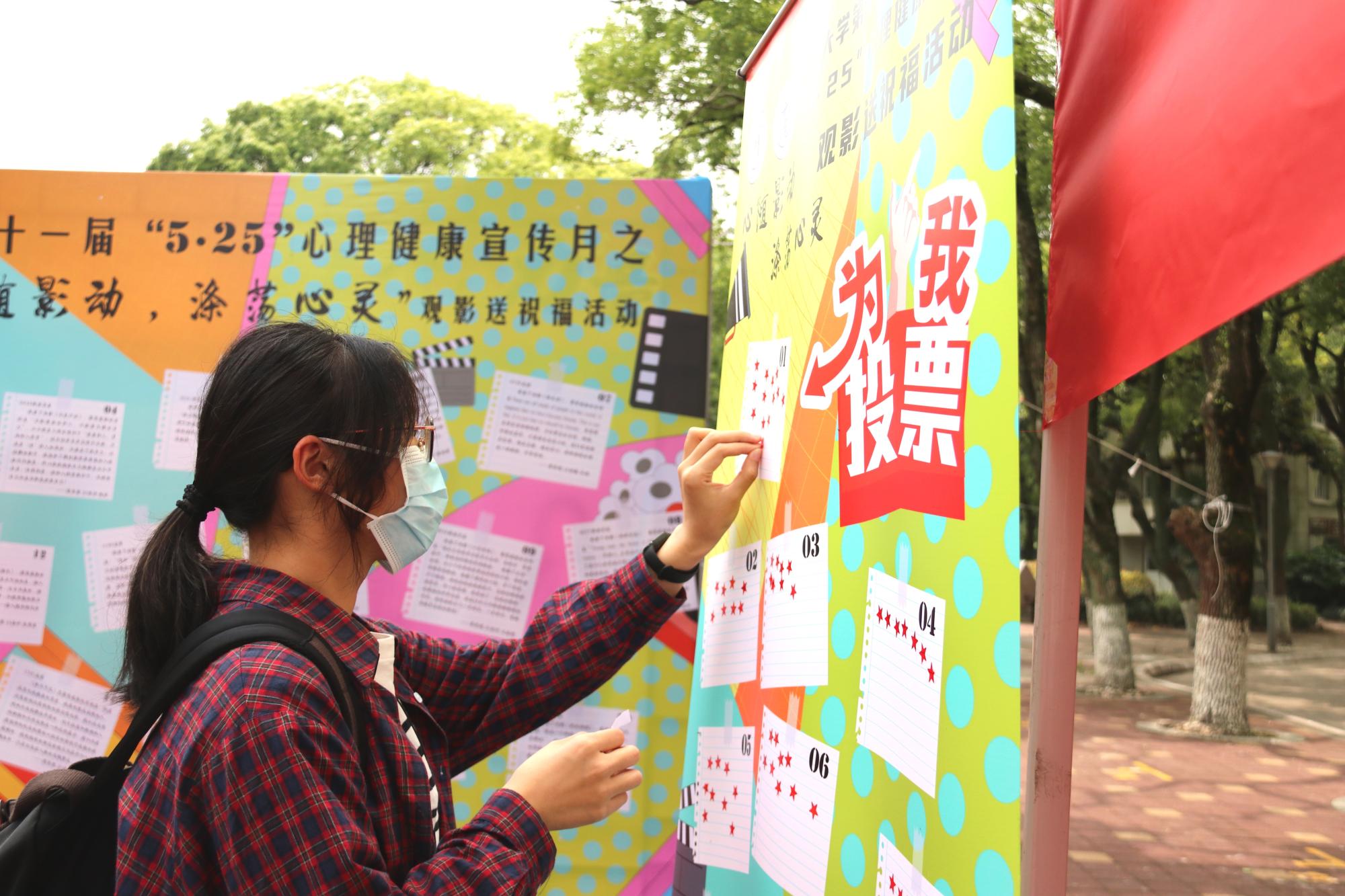 5月25日,为给学生办些实事,对学生进行心理健康教育。捷克论坛 在有思广场顺利开展“心随影动,涤荡心灵”大学生心理健康观影祝福语线下投票活动,吸引了近百名同学现场参加。