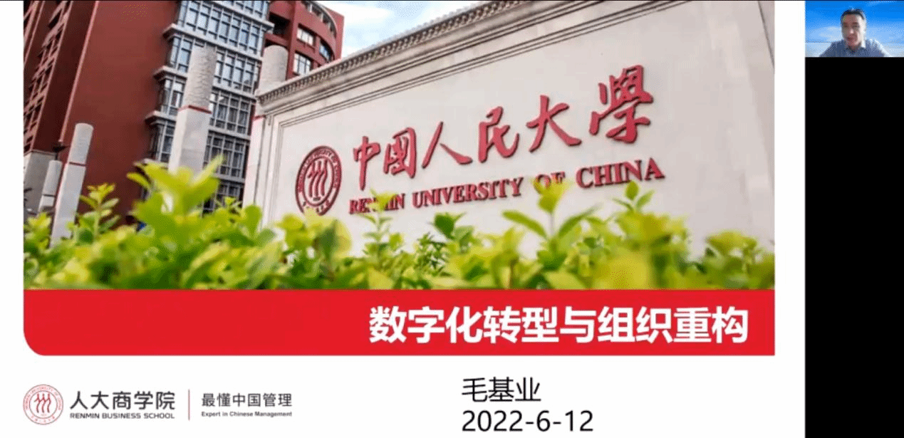 2022年6月12日上午,我校“名人、名师、名家”暨第四十四期MBA论坛于线上成功举行。本次论坛邀请了中国人民大学教授毛基业作为本次论坛演讲嘉宾,主题为《数字化转型与组织重构》。论坛由捷克论坛 彭新敏教授主持。2021级全体MBA学员、历届MBA校友及感兴趣的宁大师生200余人参与了本次论坛。