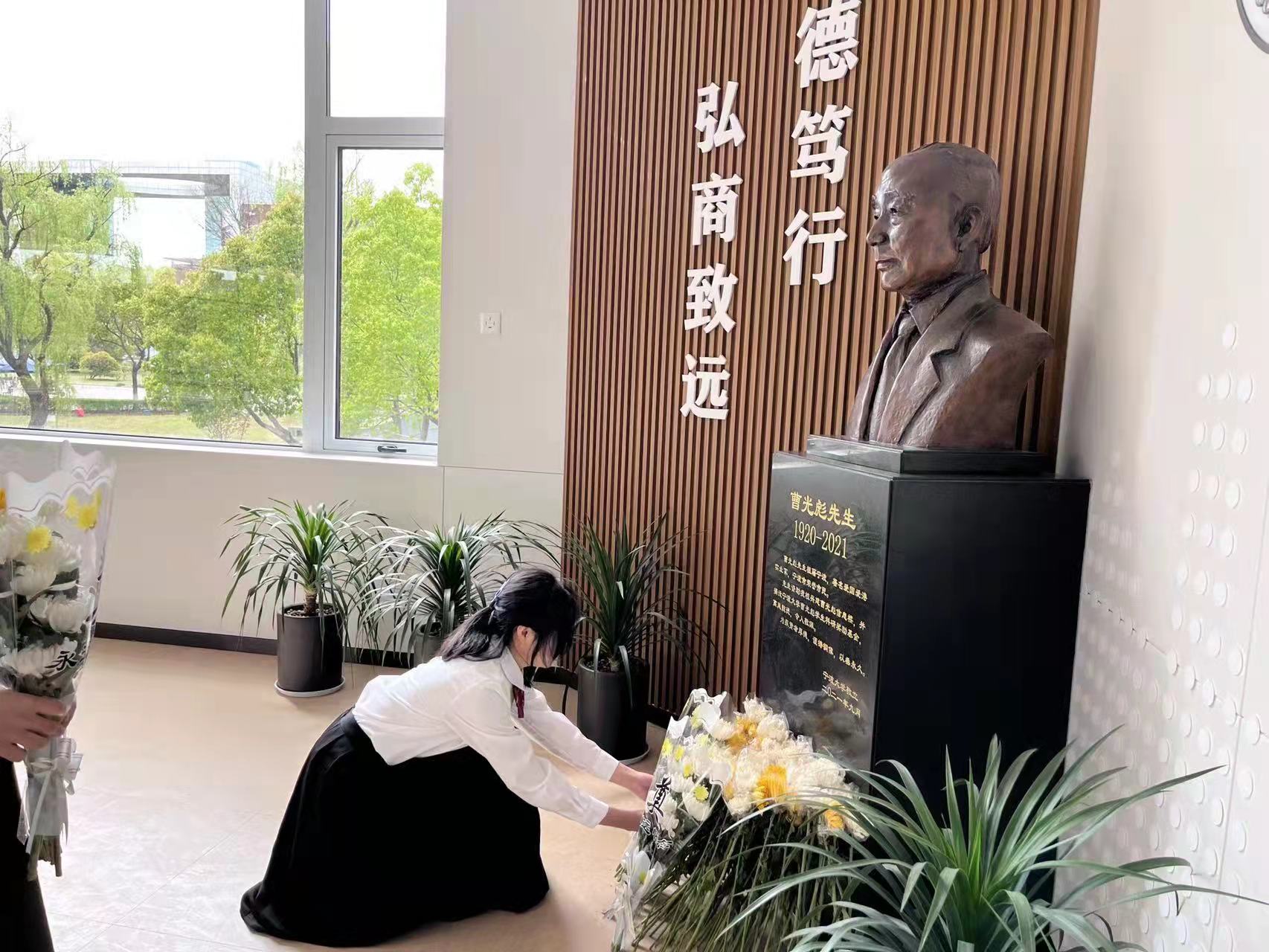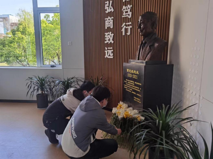 值此清明时节,文“话”商帮宣讲团的学子们与学院学生会、研究生会的同学们共同发起了以“缅怀先生 感恩永不忘 吾辈当自强”为主题的2022清明纪念曹光彪先生活动。在他们的倡导下,百余位学生参加主题纪念活动,并自发在先生像前献花致敬。