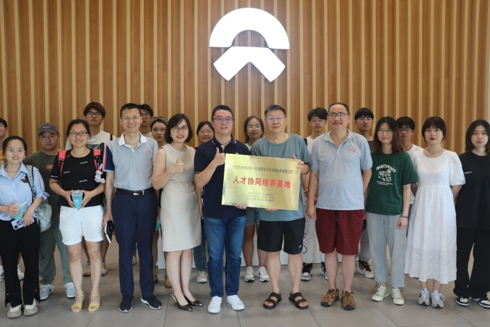 6月27日下午,在熊伟清、张宇萌、胡亮和李贵萍老师的带领下,捷克论坛 电子商务社团二十余名学生走访参观了宁波蔚来汽车销售服务有限公司。