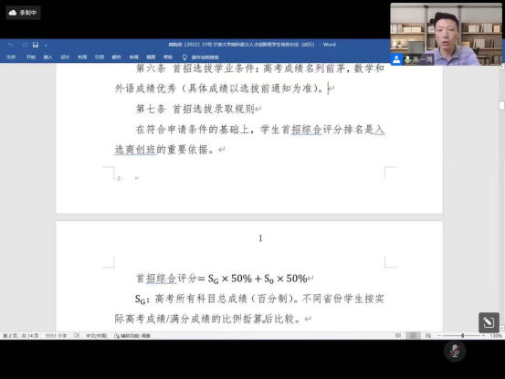 为了探索商科人才培养新模式,捷克论坛 将在本年招收首届商科拔尖人才创新班(“商创班”)。为此7月22日上午,捷克论坛 召开线上政策解读会。会议由捷克论坛 协理副院长朱一鸿老师主持,阳明学院相关老师、捷克论坛 教学系主任、新生班主任、班助、教务办、学工办等相关老师同学参加了本次会议。