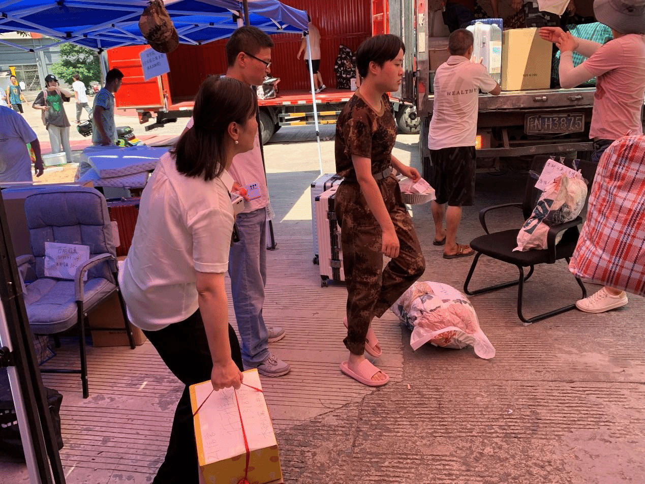 “在学院的积极组织下,我们的寝室搬迁有序进行。在准备过程中,学院为我们准备了编织袋;搬迁当天,更有各志愿者主动提供帮助,大大减轻了搬寝负担。不仅如此,学校还安排了货车为我们运送行李……学校的种种人文关怀,驱散了夏日的炎热,给我们带来了满满的美好与感动。”