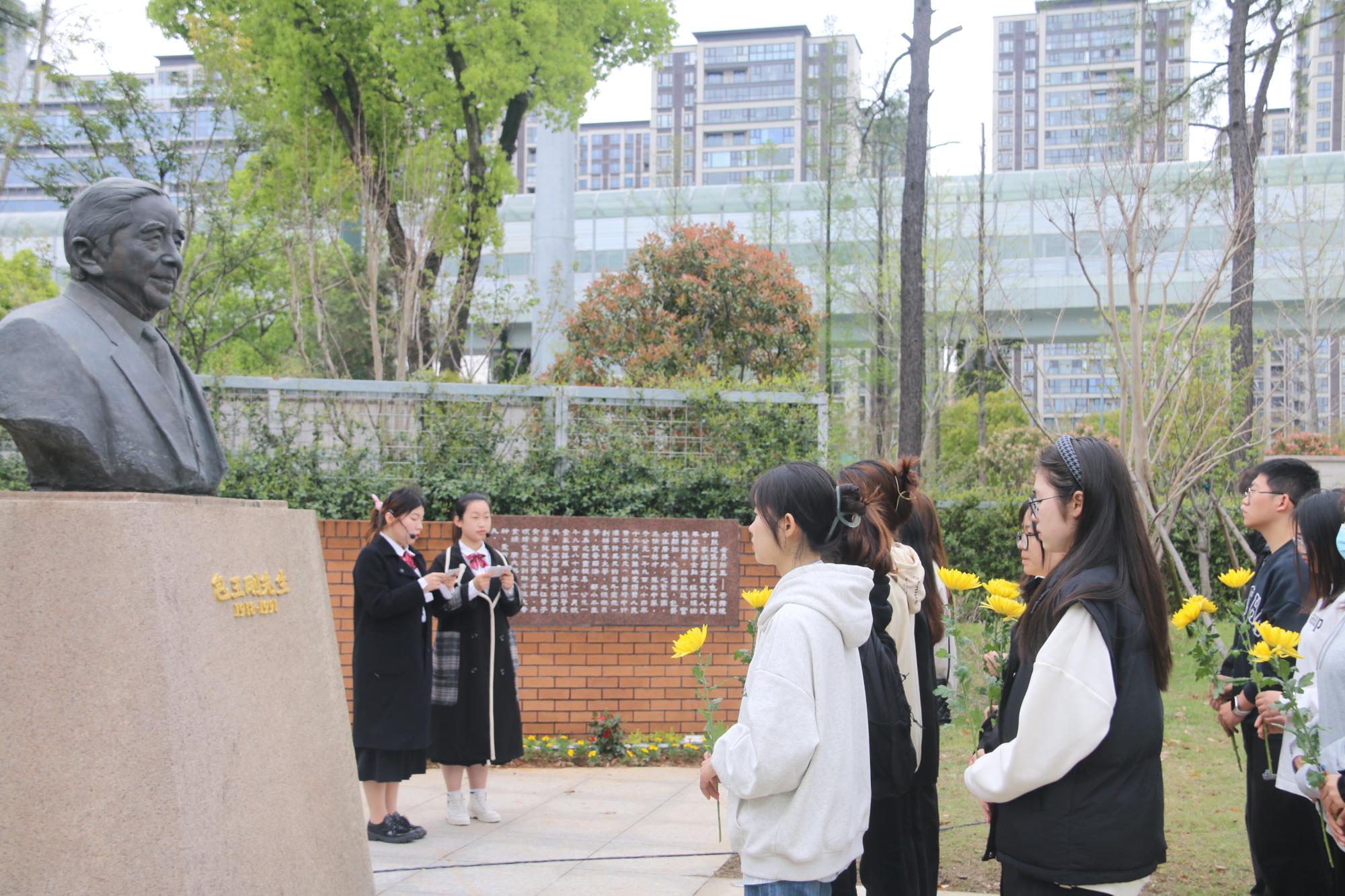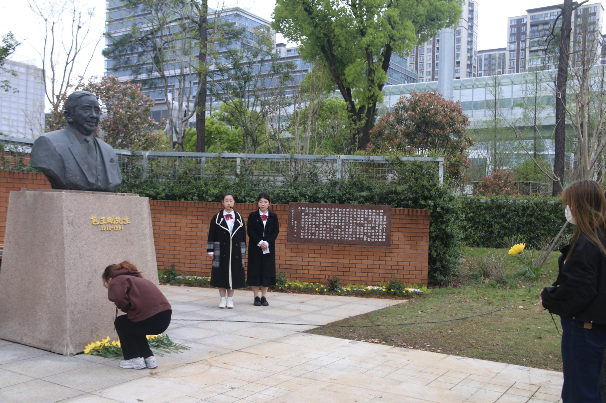 仪式伊始,文“话”商帮宣讲团在包玉刚公园分享包玉刚先生的故事。宣讲团成员杨婷动情地说:“包玉刚先生在青年时艰苦奋斗,勇于逐梦,在晚年时心怀感恩,回馈家乡,先生的举动令人动容,我们将永远铭记他的贡献,感恩他为捷克论坛 的付出,向他学习与致敬”。现场氛围浓厚,商院青年在包玉刚先生铜像前鞠躬致意,敬献鲜花。