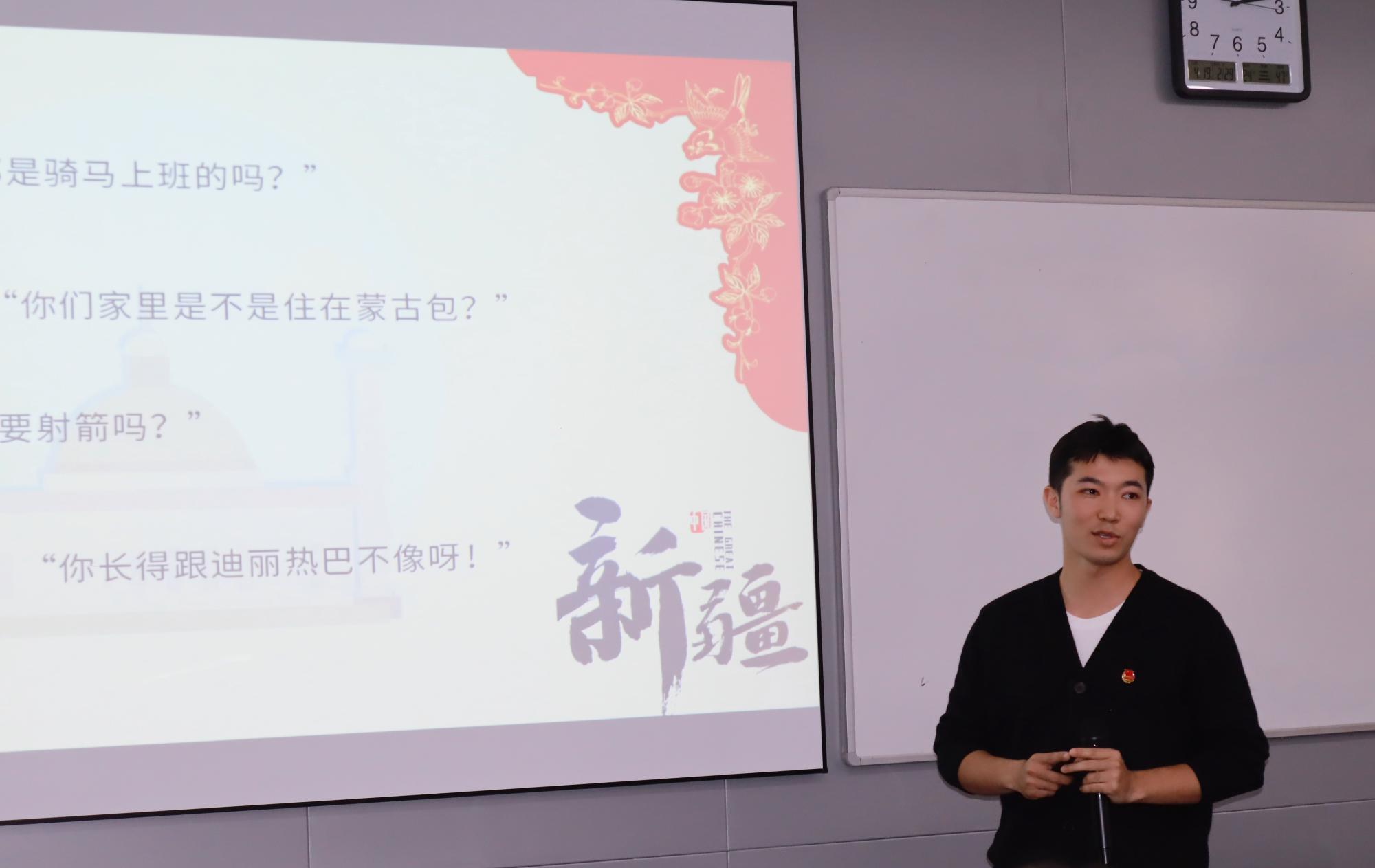 随后,戴秉邦为同学们介绍了实践团在暑期展开的“聚力共绘同心圆,展望新疆新未来”的实践活动,号召更多的青年大学生们,胸怀使命担当,到祖国最需要的地方去,为中国发展贡献自己的青春力量!