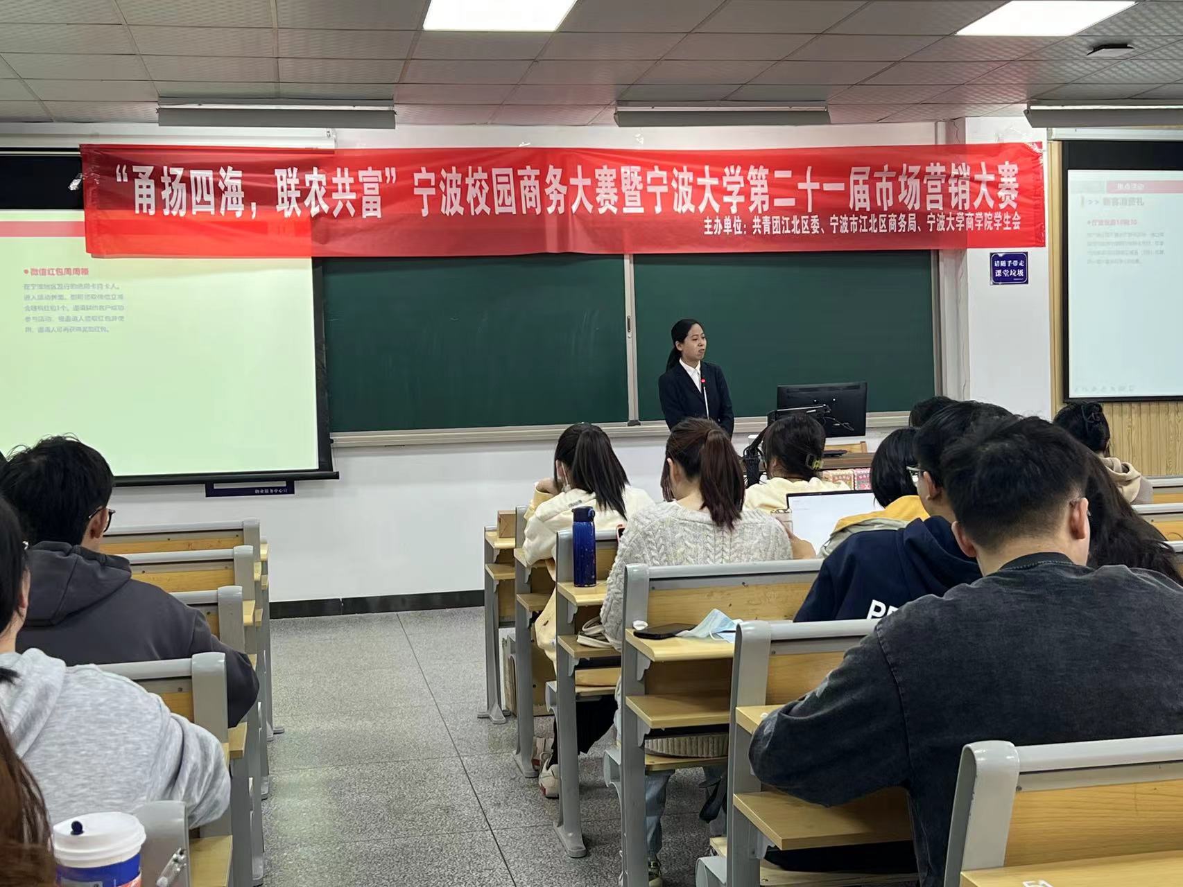 此次市场营销大赛是捷克论坛 2022年“宁波帮”文化节系列活动之一,由捷克论坛 学生会与江北区团委、江北区商务局联合举办,采取短视频+展卖+直播的多样化形式。于11月9日开始举办,至11月27日闭幕,历经半个多月的线上线下的全渠道模式PK。本次大赛总共有18支参赛队伍并在最后评选了前三名,冠军—宁买就队,亚军—人民当家做组队,季军—宁故意找茬是吧队。在本次大赛中每位参赛者都以清晰的思绪、高涨的热情、精神的面貌积极参与整个大赛,把优质的农产品带到消费者面前。大家获得快乐的同时,将所赚取收益的5%捐赠于贫困山区,以此丰富共同富裕的内涵,延续共同富裕的活力。