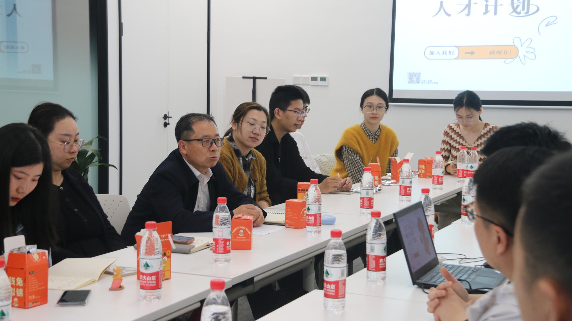 参观结束后,双方召开座谈交流会。会上,企宣主管王焕对博洋家居科技有限公司进行了企业的概况介绍,使老师和同学们对博洋家居有了整体认识。行政主管林珊珊进行了博洋家居在时尚IP孵化案例方面的分享。宁波博洋家居科技有限公司行政总监任浩迪介绍了博洋管培生项目、两大人才计划“追光计划”与“晨风计划”,强调了企业对人才创新潜质以及发散性思维的需求。博洋创业学院院长陆志强补充介绍了博洋家纺的发展历程以及特色优势。