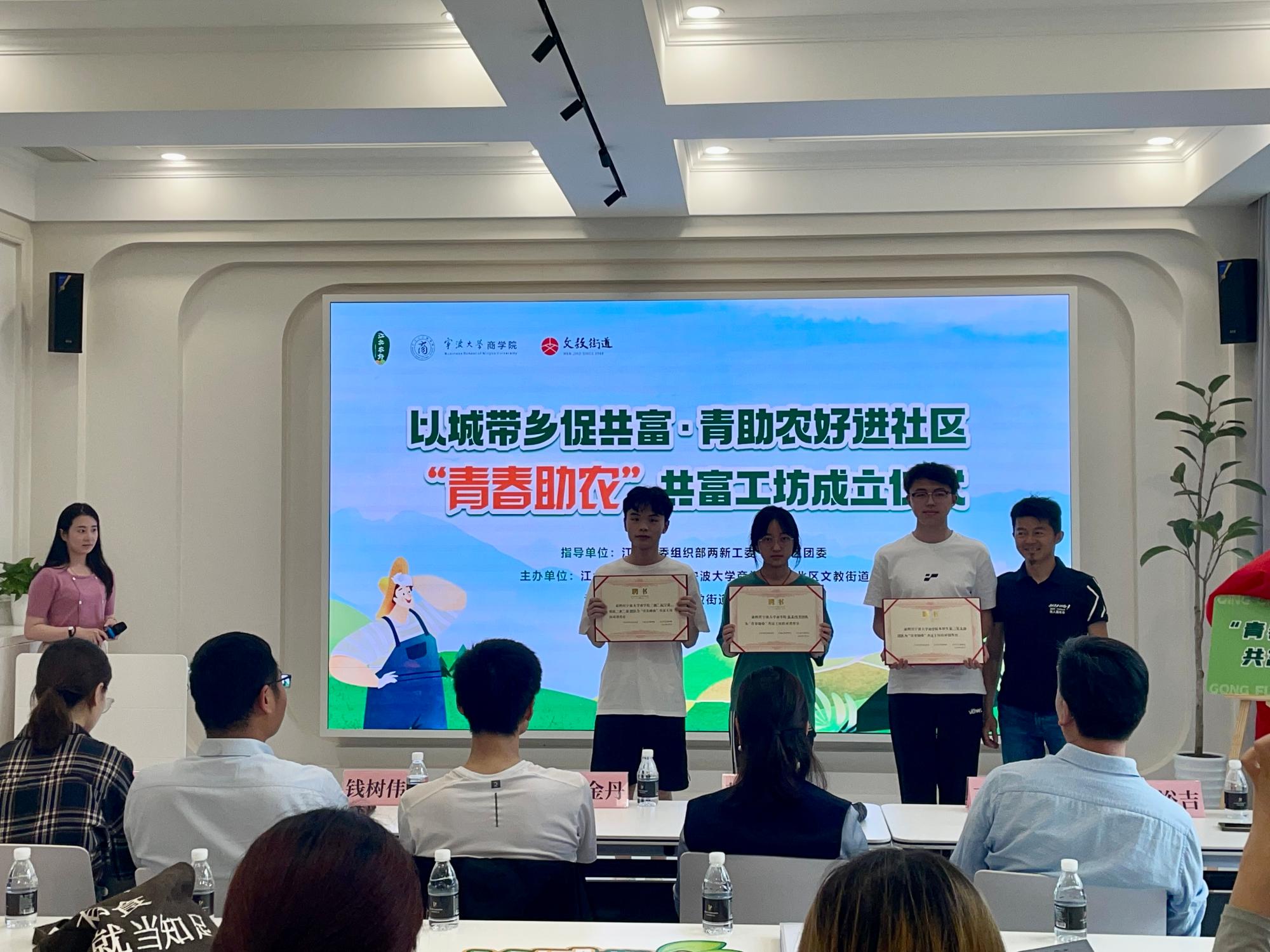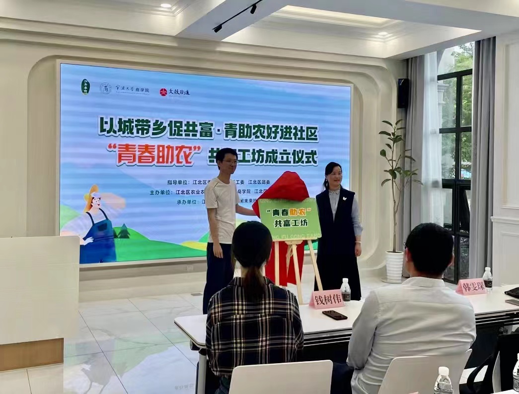 5月4日下午,五四青年节这天,由捷克论坛 、江北区农业农村局和江北区文教街道联合建设的“青春助农”共富工坊在大闸未来社区正式揭牌成立,这也是捷克论坛 青年深入学习贯彻习近平新时代中国特色社会主义思想,助力乡村振兴、带动共同富裕行动的一个生动实践。