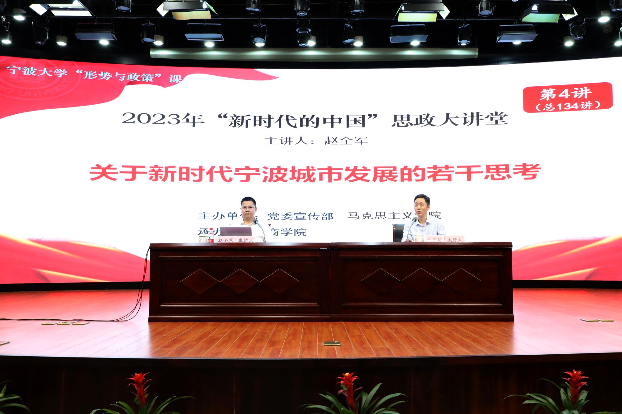 赵全军从宁波的基本情况出发,向同学们分别概括了陆上宁波、海上宁波、海外宁波的基本情况,让同学们对宁波有了全面的了解。同时,他针对宁波发展成效提出“四力宁波”的概念,分别从实力、活力、魅力、给力四个方面向同学们描绘了一幅别开生面的宁波画卷。随后,他揭示了宁波取得如此发展成效的原因,指出了集群发展、民营经济、体制优势、文化带动这四个的优势造就了现有的宁波。最后,他总结了宁波发展面临的创新策源能力不够强、“两头在外”的外向型经济面临极大不确定性、传统优势在弱化、规模体量缺优势等四大难题,并创造性地提出了宁波新发展新思路的四大抓手。