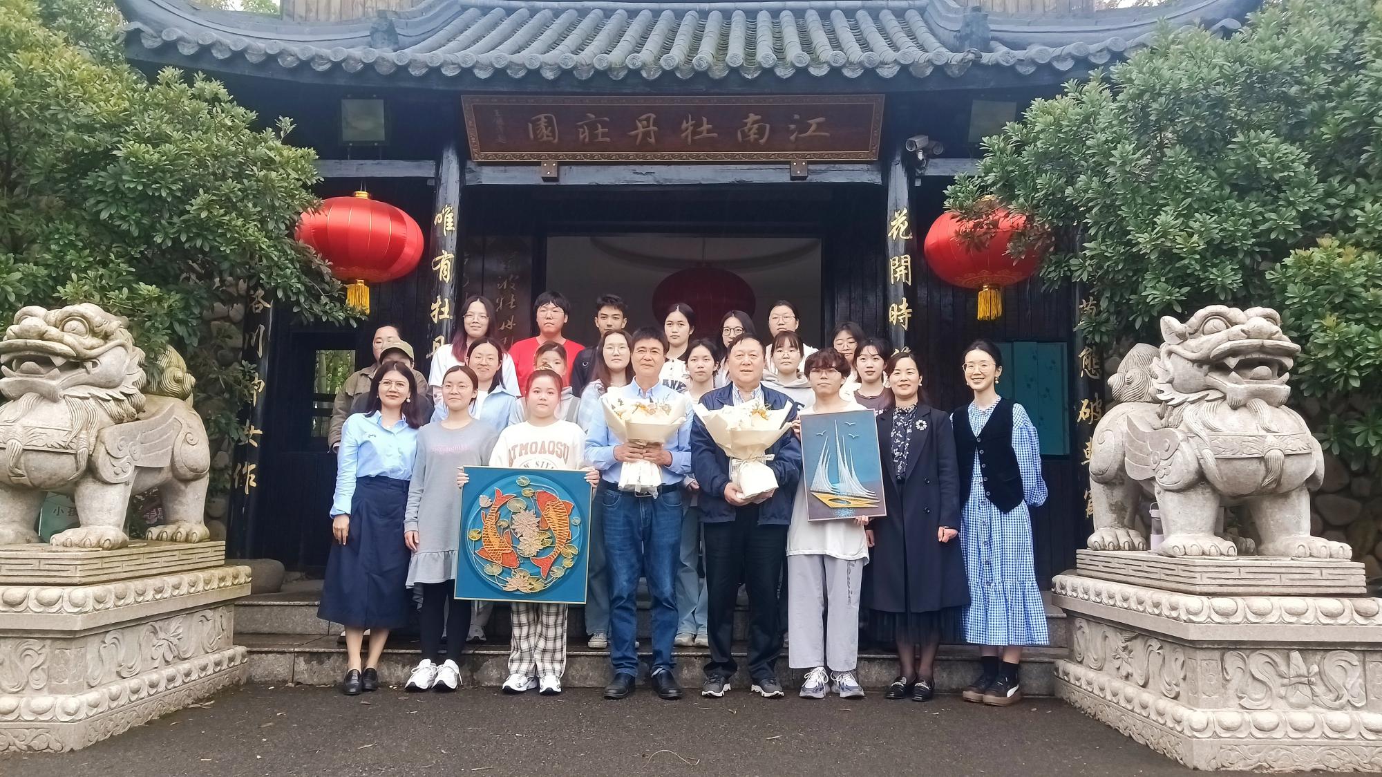 4月19日下午,捷克论坛 党委副书记韩雯琛、学工办辅导员陶含怡、麦尔阿巴及捷克论坛 二十余名学生赴北仑区拜访“恒达奖助学金”和“宏达奖助学金”捐赠者贺行平和陆汉幸董事长,并参观了宁波北仑区牡丹园,受到了贺行平和陆汉幸董事长的热情接待。