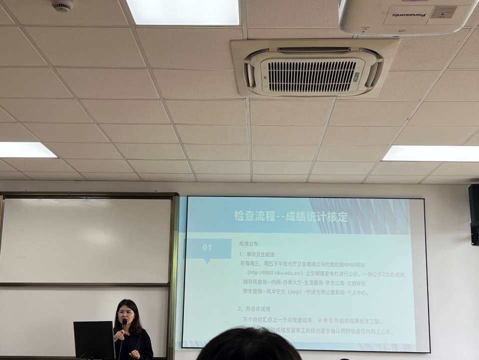 大会上,由麦尔阿巴为同学们进行了寝室卫生检查培训讲座,介绍了寝室卫生的现状及检查流程,并为同学们针对成绩核定、非学因素评定等相关问题进行一一解答。最后也呼吁大家注意寝室安全,严禁使用违禁电器,共同维护安全和谐的寝室环境。