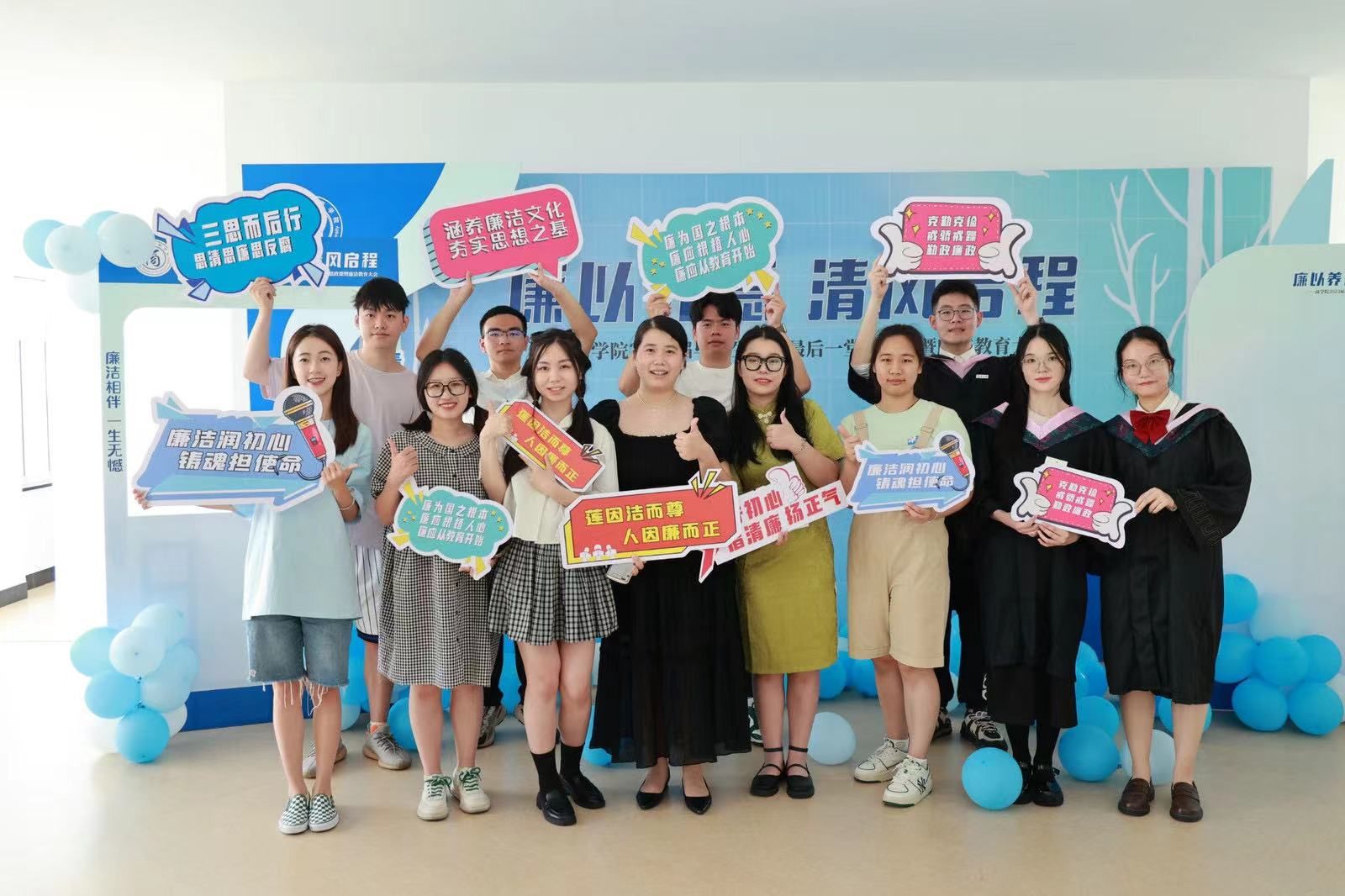 清廉游园会、廉洁教育会、廉洁党课......今天的最后一堂思政课有趣多彩又内涵丰富,只为以学生喜闻乐见的形式对毕业生进行廉洁教育,在毕业生心中埋下廉洁从业的种子,开启人生新的篇章。