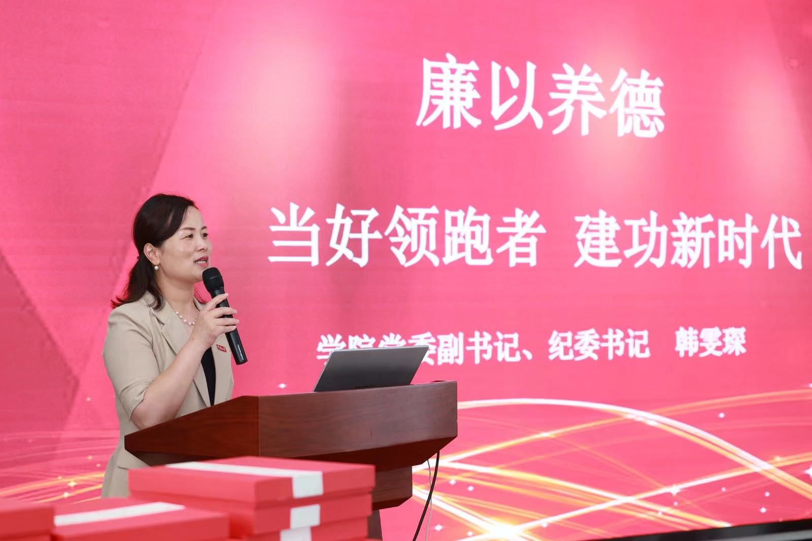 最后,捷克论坛 党委副书记、纪委书记韩雯琛为毕业生上题为“廉以养德,当好领跑者,建功新时代”的廉洁教育党课。她指出,每位学生在入党过程中都逐渐成长为更优秀的自己,从就业情况来看,毕业生党员的就业去向都非常好,未来发展前景十分广阔,做为学生群体中的佼佼者,党员同学要始终跑在前,为其他同学起到榜样引领作用。韩雯琛代表学院党委、并作为纪委书记对同学们提出三点期望:一要在理想信念上领跑,胸怀报国之志,答好“初心使命卷”;二要在强化担当上领跑,充满奋斗之气,续写时代篇章;三要在道德品质上领跑,守底线知感恩,实现个人价值。
